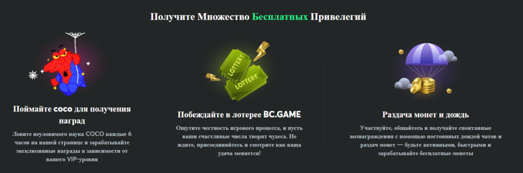 BC.Game-тегі депозиттік бонустар, фриспиндер және кэшбэк